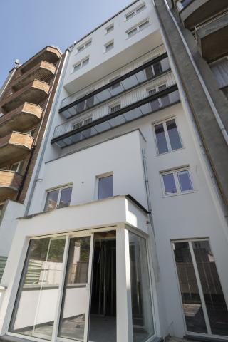 Deze diepgaande en energetische renovatie gebeurde met alle respect voor het verleden. De typische, architecturale kenmerken werden volledig hersteld in de oorspronkelijke toestand. De stalen ramen met valse centers werden vervangen door aluminium exemplaren met echte centers.